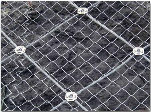 一、SNS主動防護網采用直徑為8mm的鋼絲繩(抗拉強度為1770Mpa,破斷拉力>40KN)編制并在結點處用專用“十字扣”固定而成,為sns邊坡柔性防護網的主要特征構件之一,在主動防護中通過鋼絲繩網的覆蓋來實現邊坡的加固。
